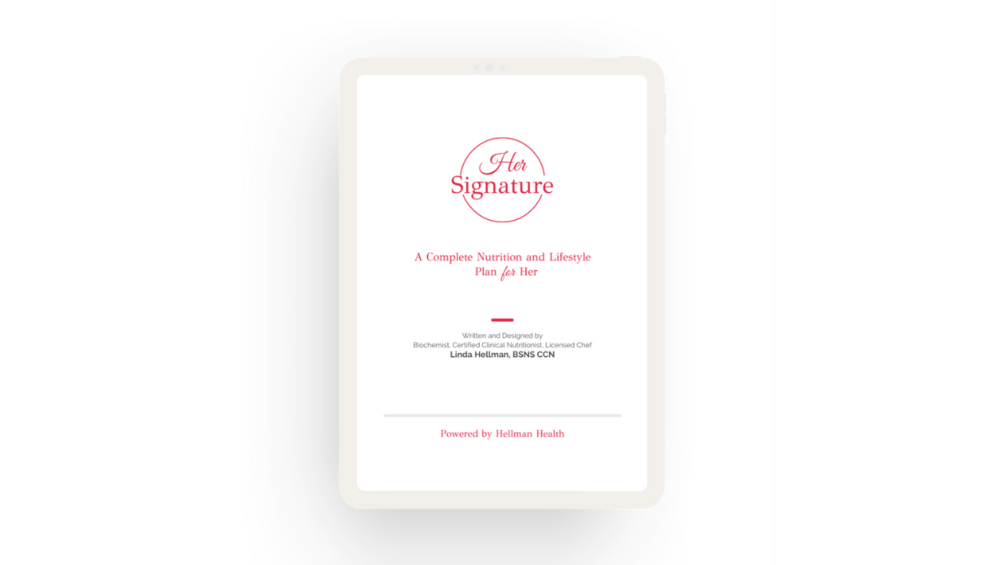 Her Signature is an anti-inflammatory nutrition and lifestyle plan to guide you into a lifetime of optimum health and well-being, written by Linda Hellman, BSNS CCN, after years of compiling research and data of what really works for women to successfully achieve all of their wellness goals.